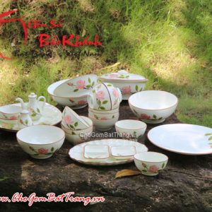 Bộ đồ ăn men kem Bát Tràng vẽ hoa hồng