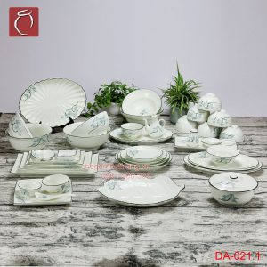 Bộ đồ ăn men kem Bát Tràng vẽ hoa Sen xanh 39 món