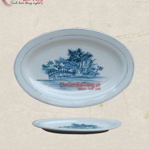 Đĩa sứ bầu dục số 1 vẽ tranh phong cảnh