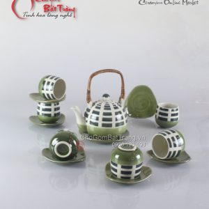 Bộ ấm chén CK cao vẽ hoa đào được sản xuất bằng loại đất sét trắng cao cấp nhất của Bát Tràng tạo lên xương gốm cứng chắc, bên ngoài được phủ một lớp men bóng đặc trưng của Bát Tràng mà không nơi nào có, các hoa văn được vẽ thủ công mang trên mình những nét tinh túy riêng của một làng nghề truyền thống